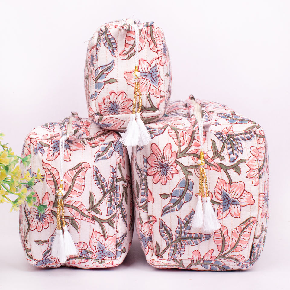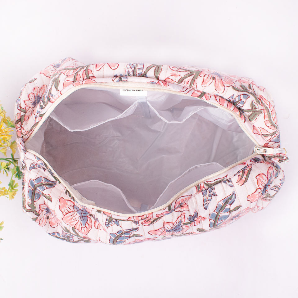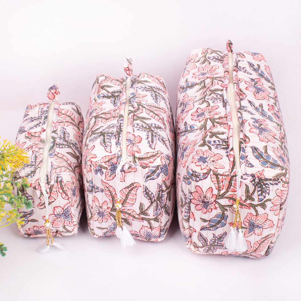 Cosmetic Handmade Zipper Bag Custom Floral Cotton Quilted Fashion Design for Travel Skin Care Beautiful Makeup Pouch Large