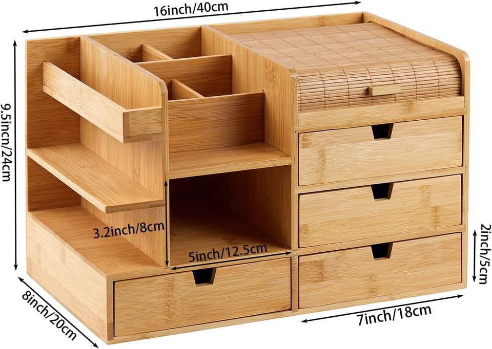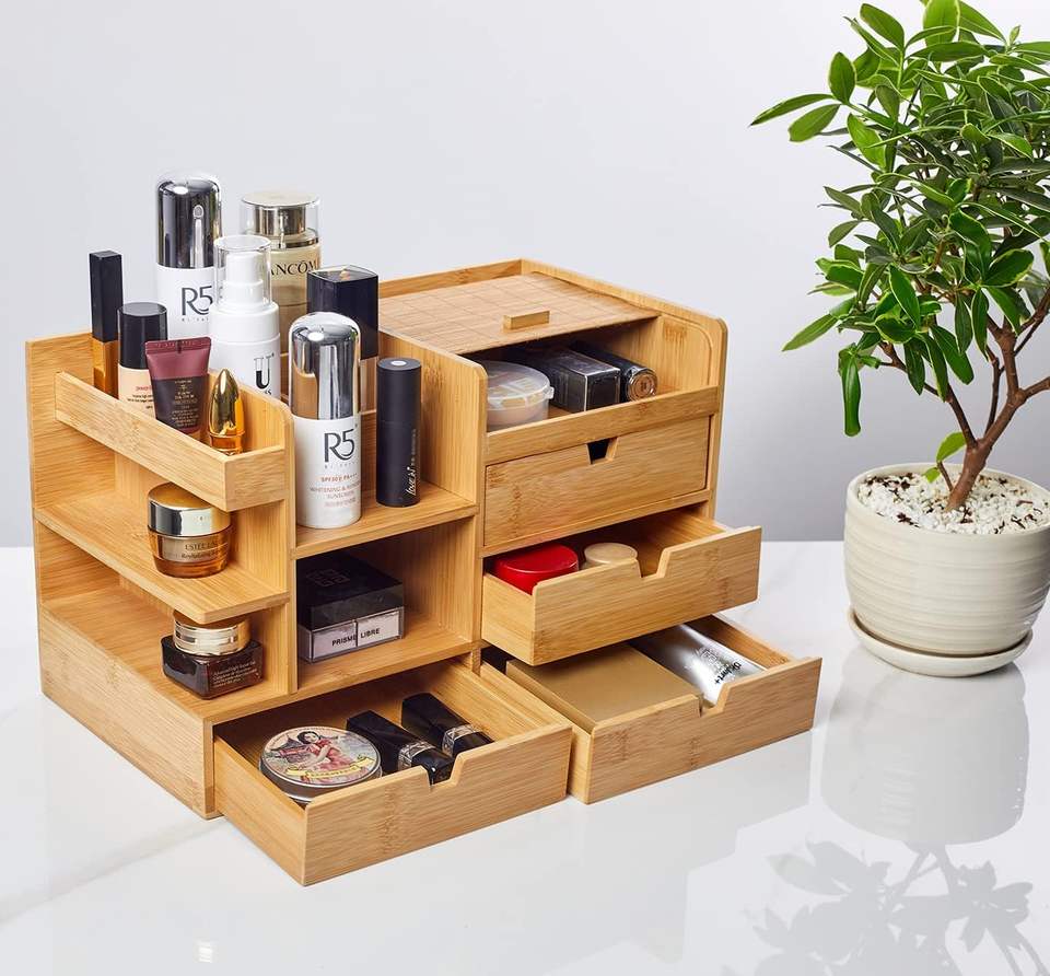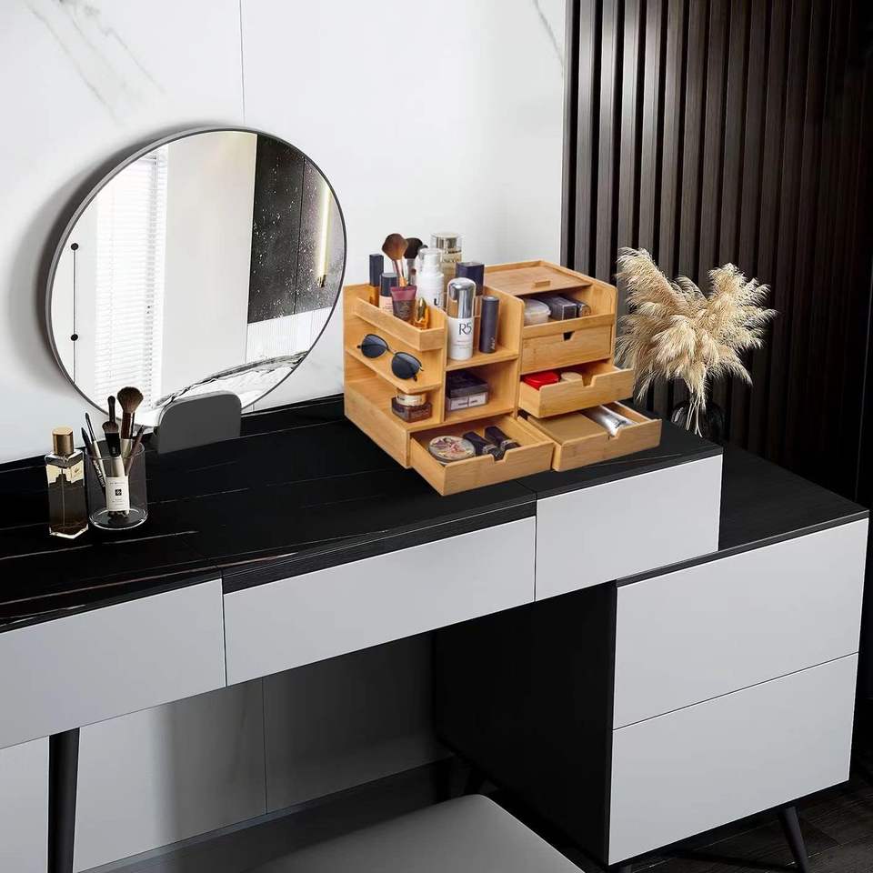 Cosmetic Makeup Organizer Storage With Drawers and Perfume Stand Bamboo Make up Skincare Organizers for Vanity,Ideal Countertop