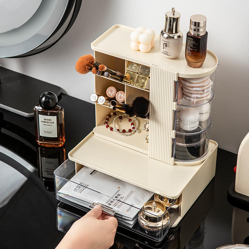 Cosmetic Organizer Desktop Storage Box With Compartments And Drawers Cream White Ivory White Black Large Capacity Makeup Brush