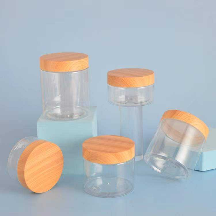 Cosmetic Pet Jar 80ml 100ml 120ml 150ml 200ml 250ml 300ml 400ml 500ml 800ml 1000ml Plastic Cream Jar with Plastic Bamboo Lid