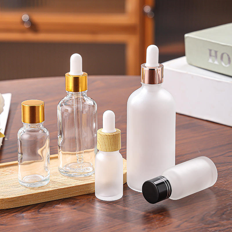 Cosmetic Skincare Packaging 10ml 15ml Glass Jar Dropper Cap Frosted Clear 30Ml 50Ml Glass Cosmetic Lotion Bottles With Dropper