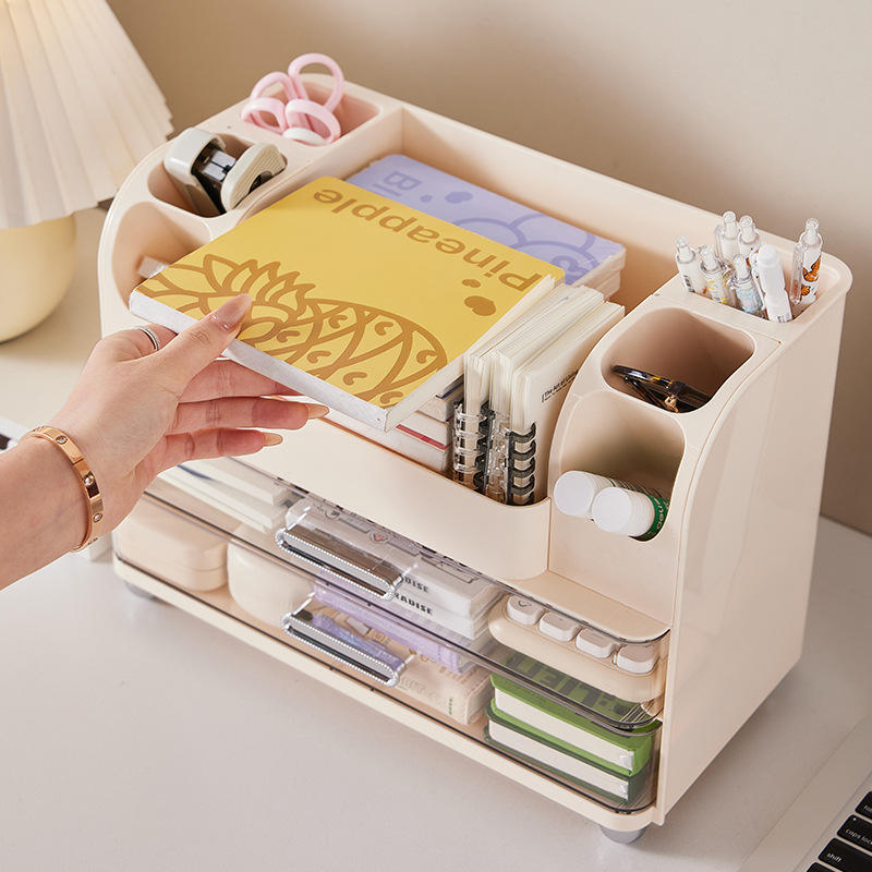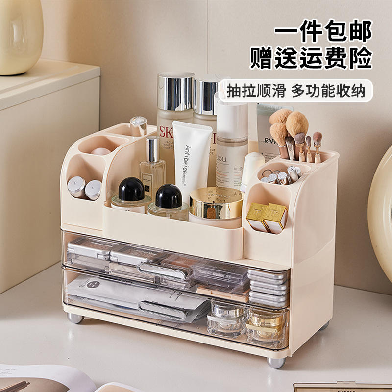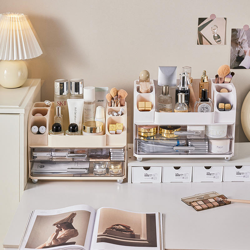 Cosmetic Storage Box Drawer Style Large Capacity Plastic Makeup Organizer Desktop Beauty Blender Cream White