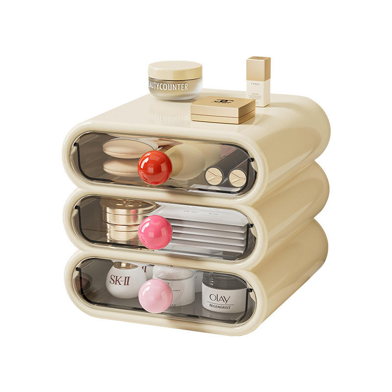 Cosmetic Storage Box With Drawers Plastic Desktop Organizer For Makeup Large Capacity Creamy White Gradient Pink Antique Green