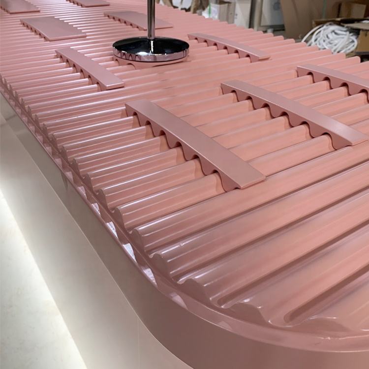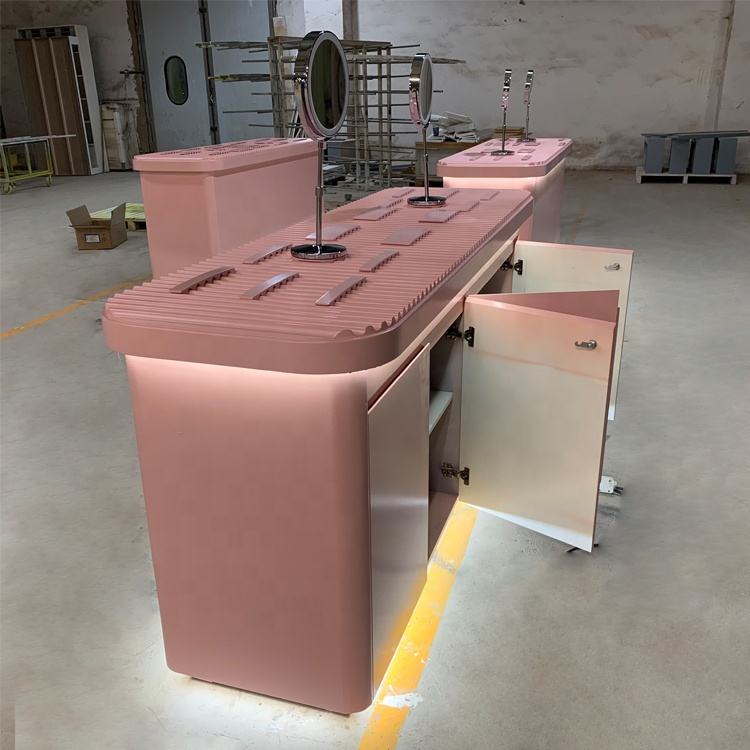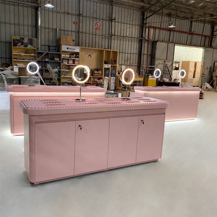Cosmetics Store Design Custom LED Lighting Pink Series Display Cabinets Commercial Makeup Display Table