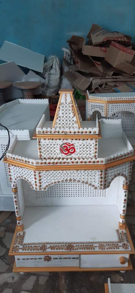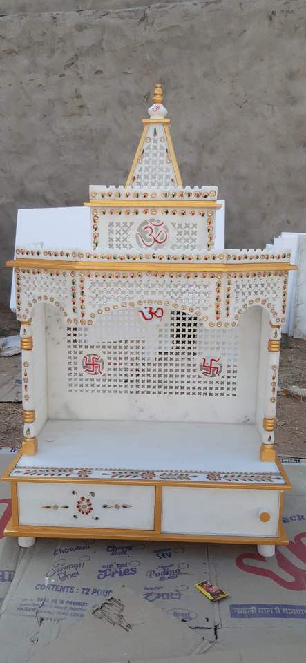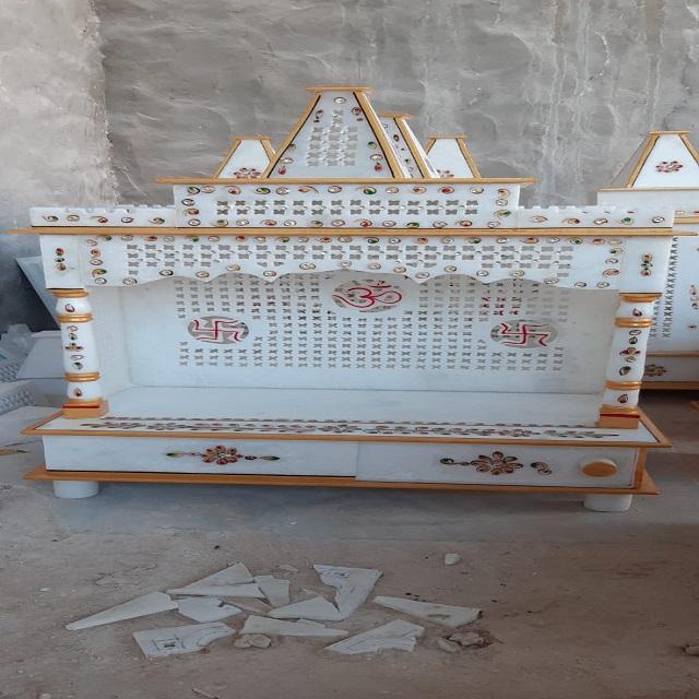 Cost Effective Exclusive Indian Golden White Mandir Temple Natural Stone Marble Home Mandir Direct Sale From Indian Supplier