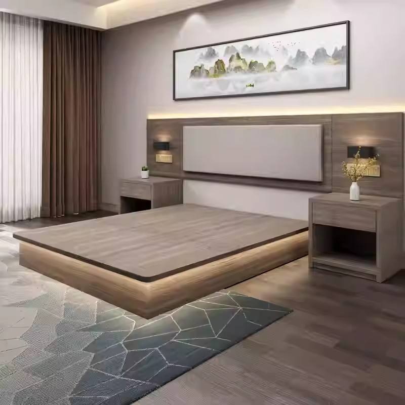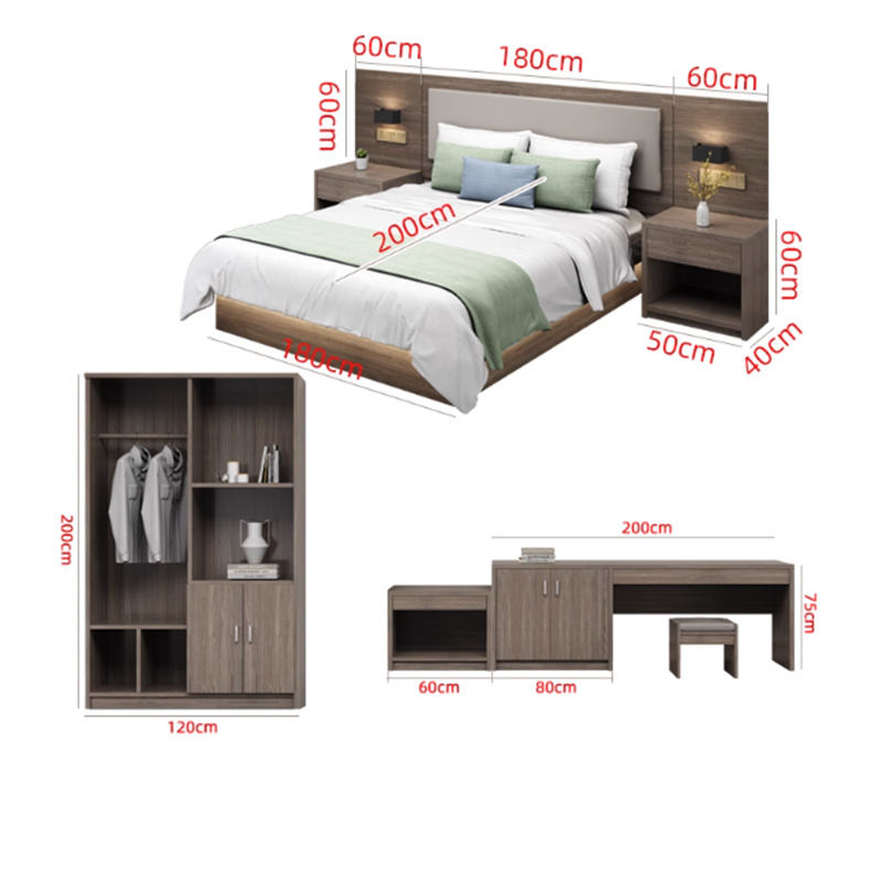 Cost-Effective Modern Hotel Bedroom Furniture Set Custom Single Double King Queen Size Wood Bed Wardrobe Desk Apartment
