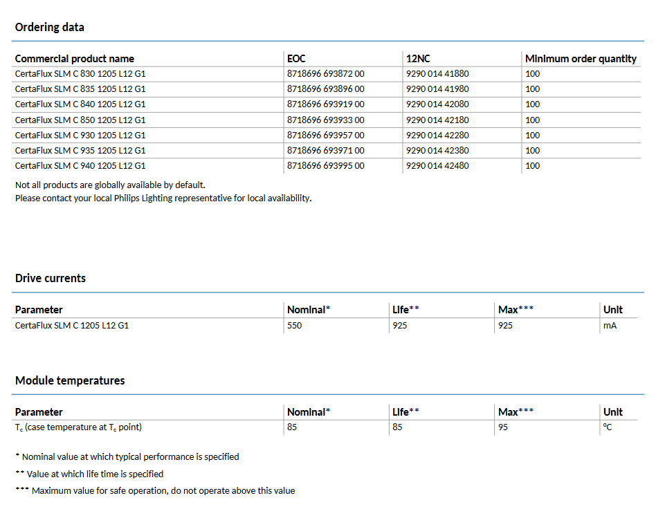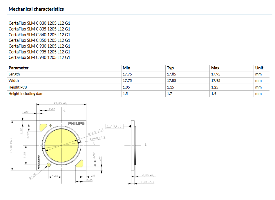 Cost PHILIPSs CertaFlux SLM C 1205 L12 G1 600lm-4000lm 19w LED COB Chip 2700k-5000k Ra80/90 3-Year Warranty