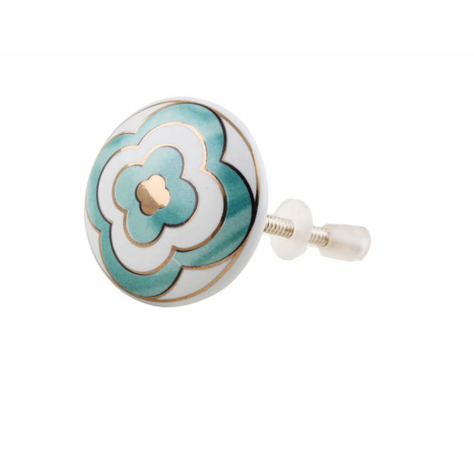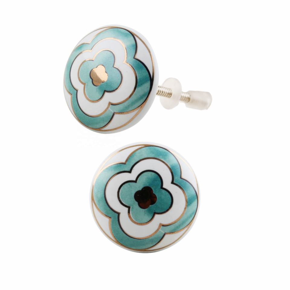 Costal Luxury Moroccan Floral Ceramic Knobs Turquoise with Gold Work for Kitchen Cabinets Dressers Bedrooms Dining Areas-CK 558