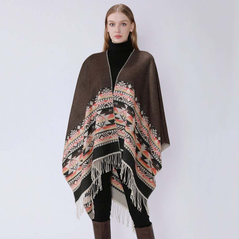 Costume Classic Wool Long Towel Mexican Ponchos Capes Women Winter Warm Open Front Hooded Shawl Tassel Outdoor Activities