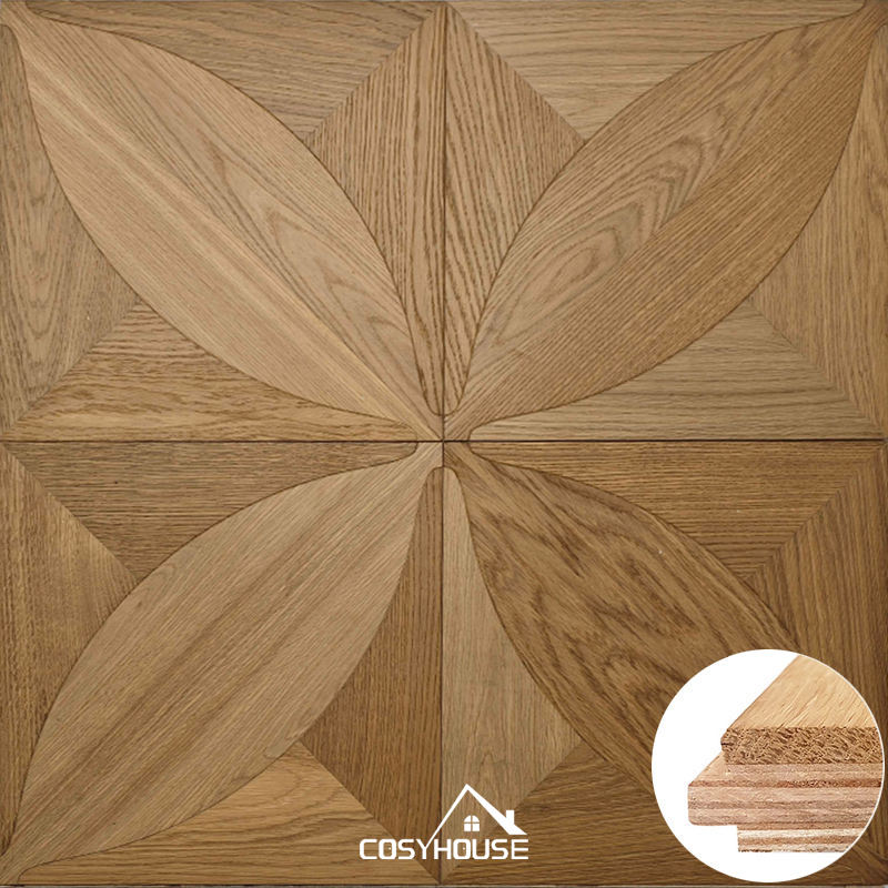 Cosyhouse Custom Luxury Black Walnut White Oak Multilayer Parquet Flooring Customized Color Leaf Pattern Engineered Floor for