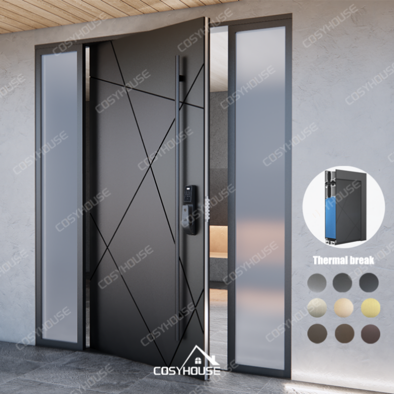 Cosyhouse High Quality Entry Doors Custom European Italian Style Modern Aluminum Batten Smart Multiblock Oversized Entry Door