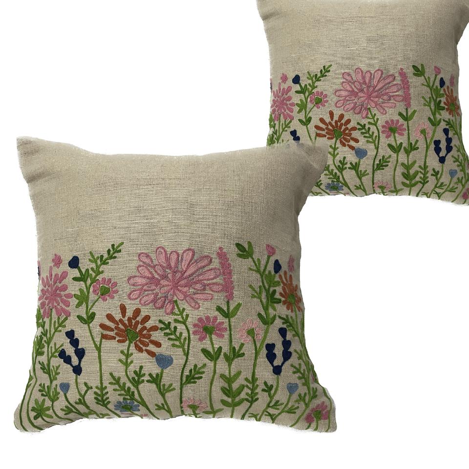 Cottage Core Eco-Friendly Handmade Jute Cushion Cover Floral Crewel Stitching Customizable Home Living Room Decor