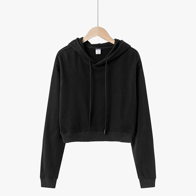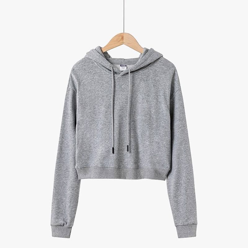 Cotton 300gsm Long Sleeve Blank Hoodie Crop Sweatshirt Average Size for Women Custom Women Cropped Top Hoodie T-shirt for men