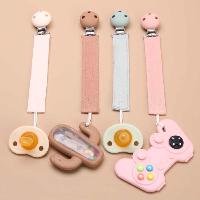 Cotton Baby Pacifier Anti Drop Chain With Teether Toy Strap Solid Color Ribbon Pacifier Chain For 0 To 24 Months