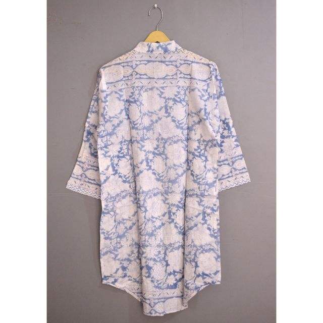 Cotton Beachwear Mini Dress Outfits Hand Block Printed Beachwear Swim Cover up Kimono Shirt