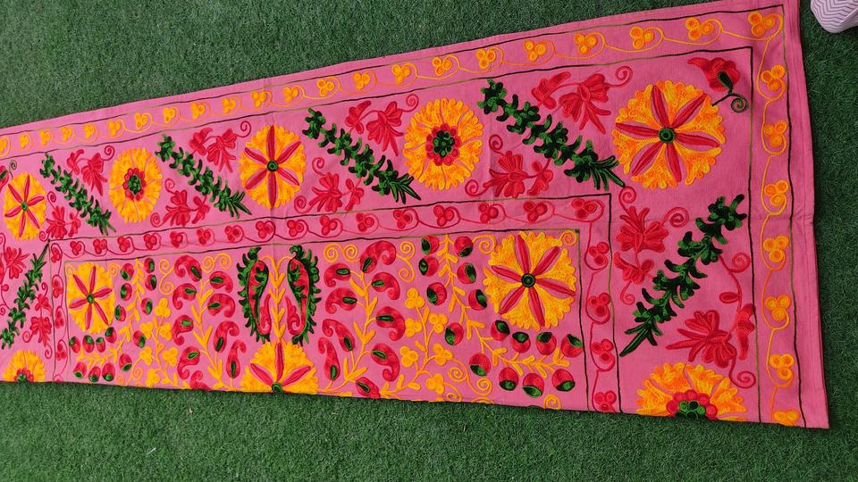 Keywords:Traditional Uzbek Suzani Embroidered Bed Sheet