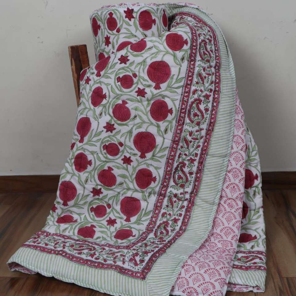 Use as:Jaipuri Rajai/Block Printed Cotton Quilt/Kantha Quilt