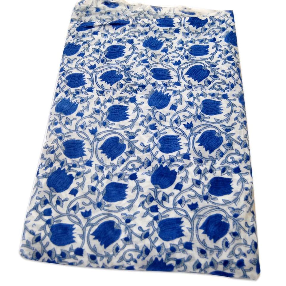 Cotton Blue Lotus Hand Block Printed White Woman Spring Dress Sewing Material Durable Beautiful Indian Voile Fabric Boys