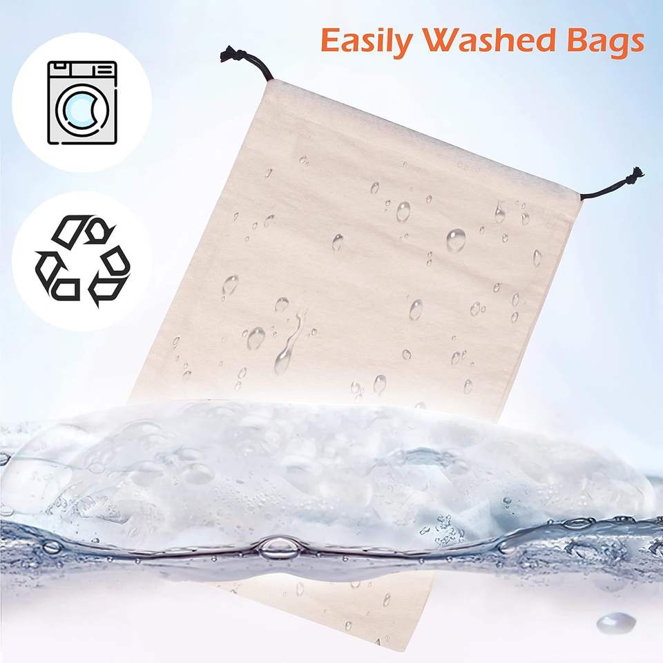 Cotton Breathable Dust-Proof Drawstring Storage Pouch Bag Pack of 3 for Clothes Storage