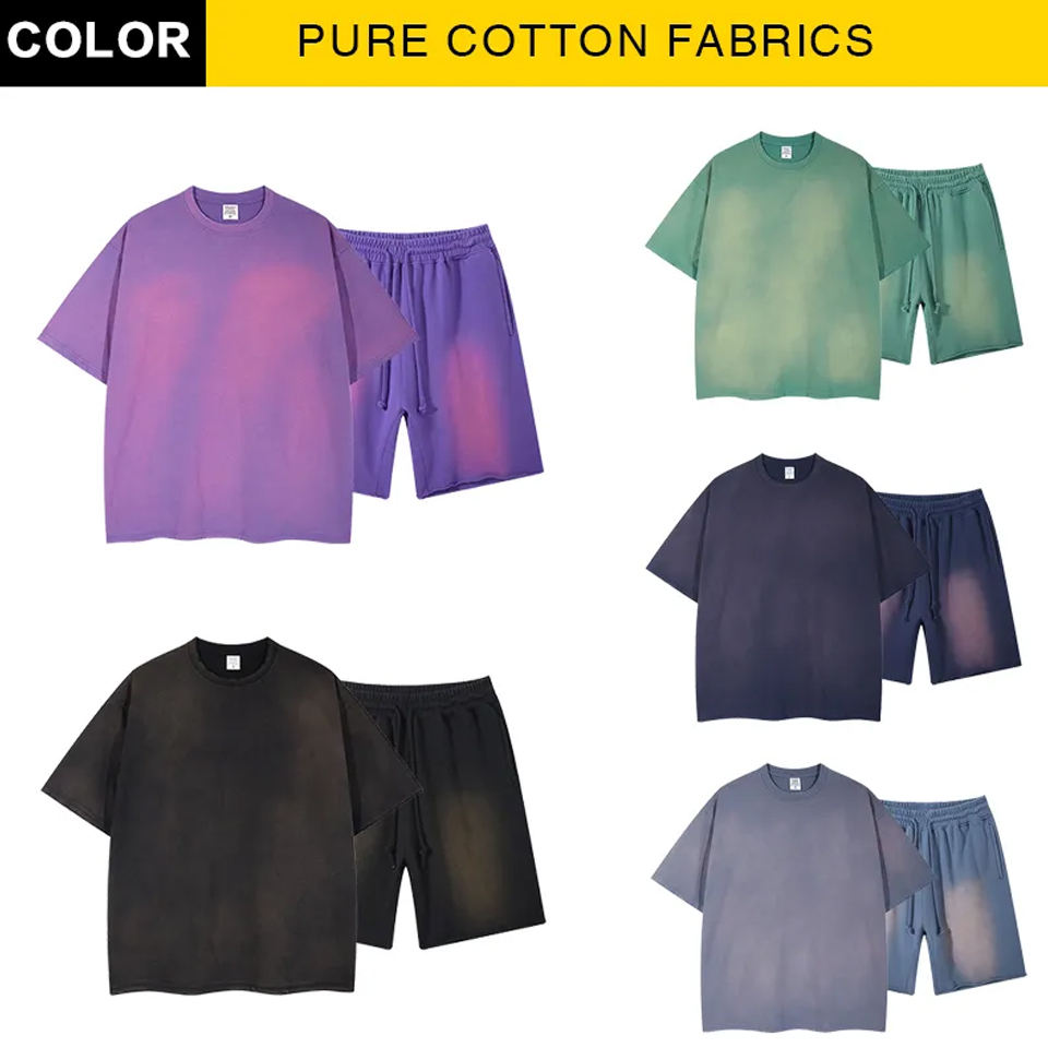 Cotton Breathable Premium Quality Half Sleeve Mineral Acid Wash T Shirt and Shorts Set Men Oversized T Shirt Men's Tracksuit