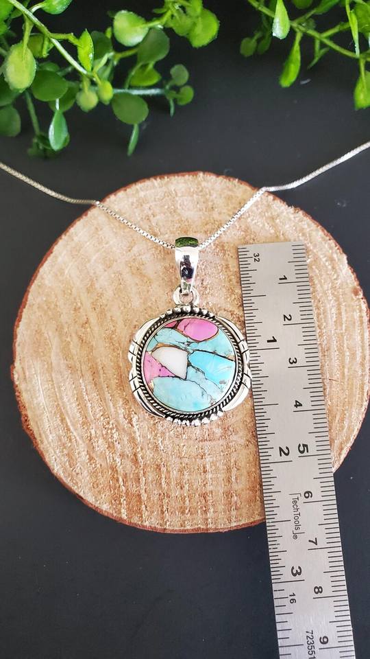 Cotton Candy Round Mohave Turquoise Necklace Sterling Silver Turquoise Pendant Blue Pink Mohave Stone Jewelry Gift for Her