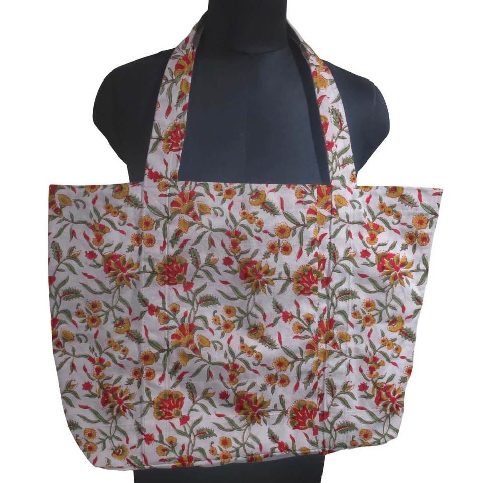Cotton Canvas Block Print Women's Shoulder Bag Floral Design Bohemian Style Beautiful Floral Design Shoulder Shopping Bag Women