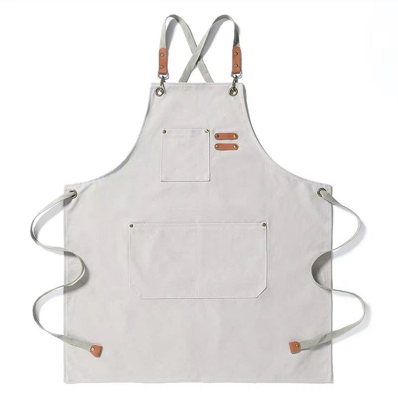 Cotton Canvas Cross Back Apron With Large Pockets Heavy Duty Adjustable Work Apron For Artists
