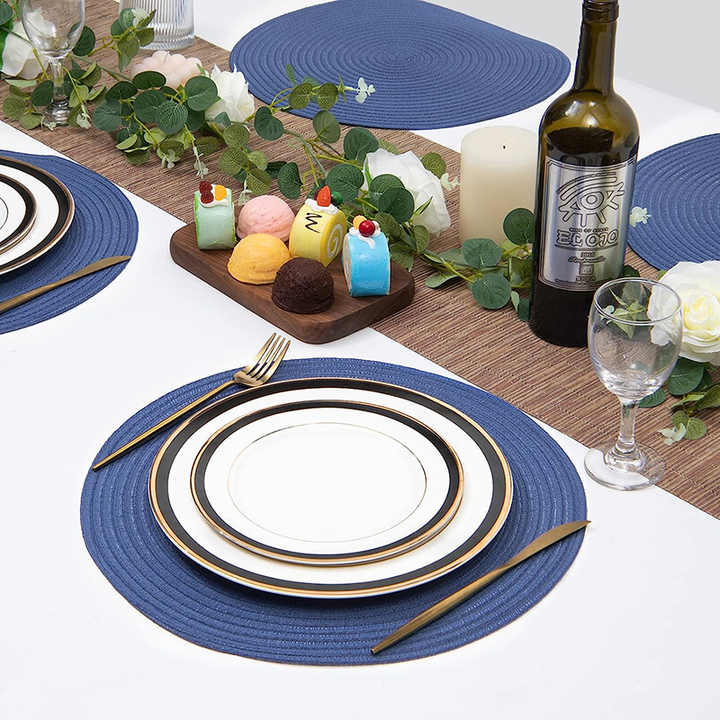 Cotton Circle Woven Round Placemats Traditional Korean Style Waterproof Paper Table Accents for Weddings