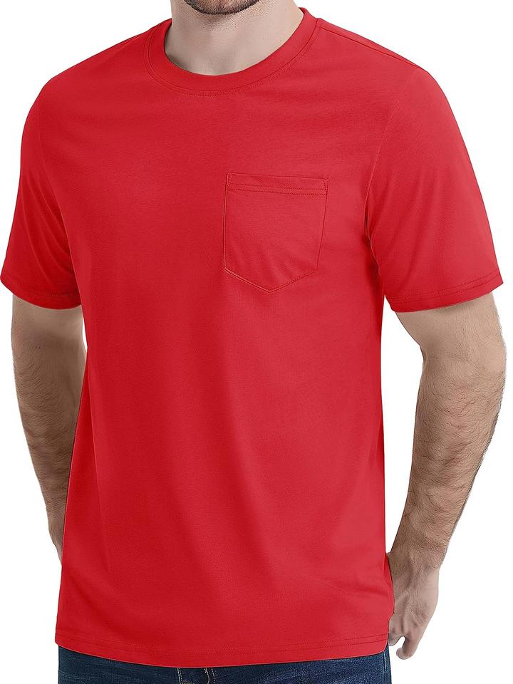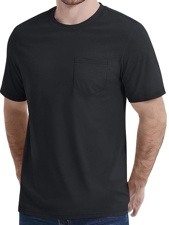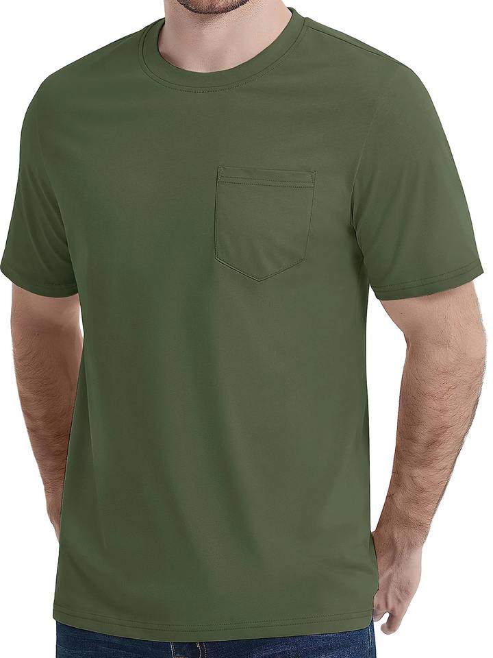 Cotton Crew Neck Shirt Men's Casual T-shirt with Chest Pocket Moisture Wicking Short Sleeve Shirt Soft Daily Top