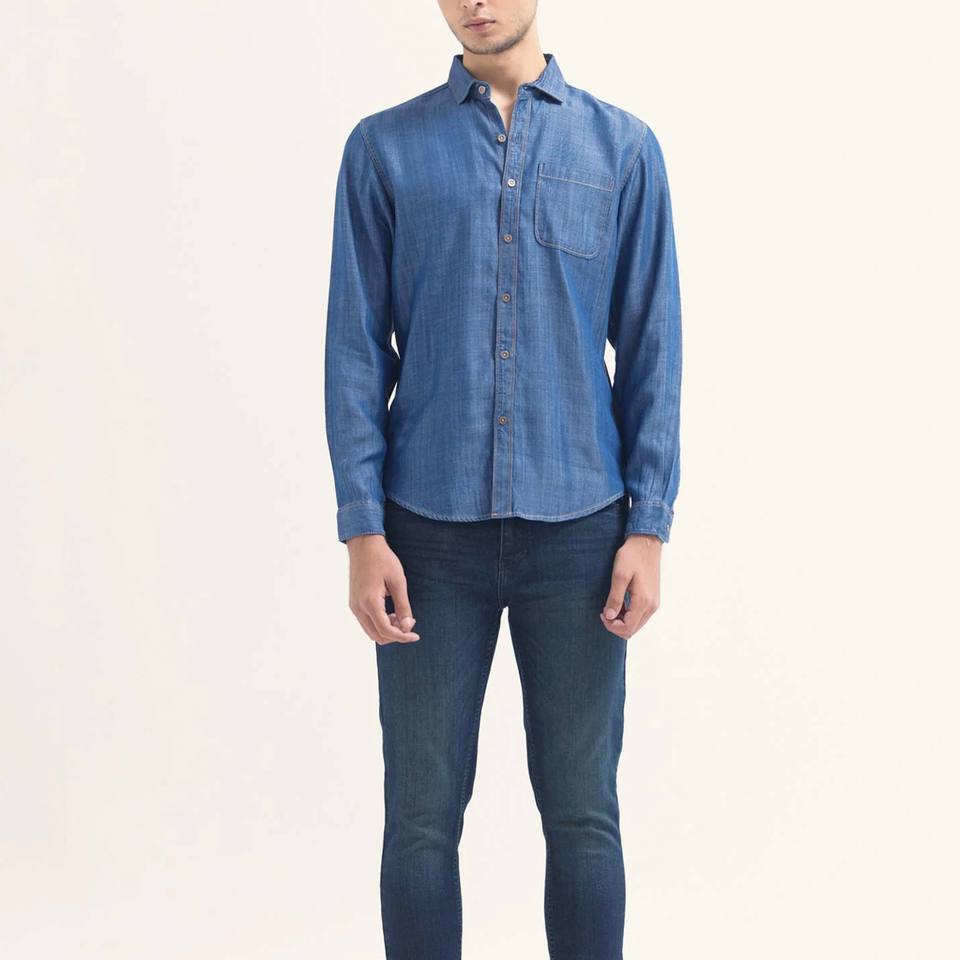 OEM Men's Long Sleeve Satin Shirt Custom Cotton Denim Casual Dress Breathable Jean Manufacture Shirts