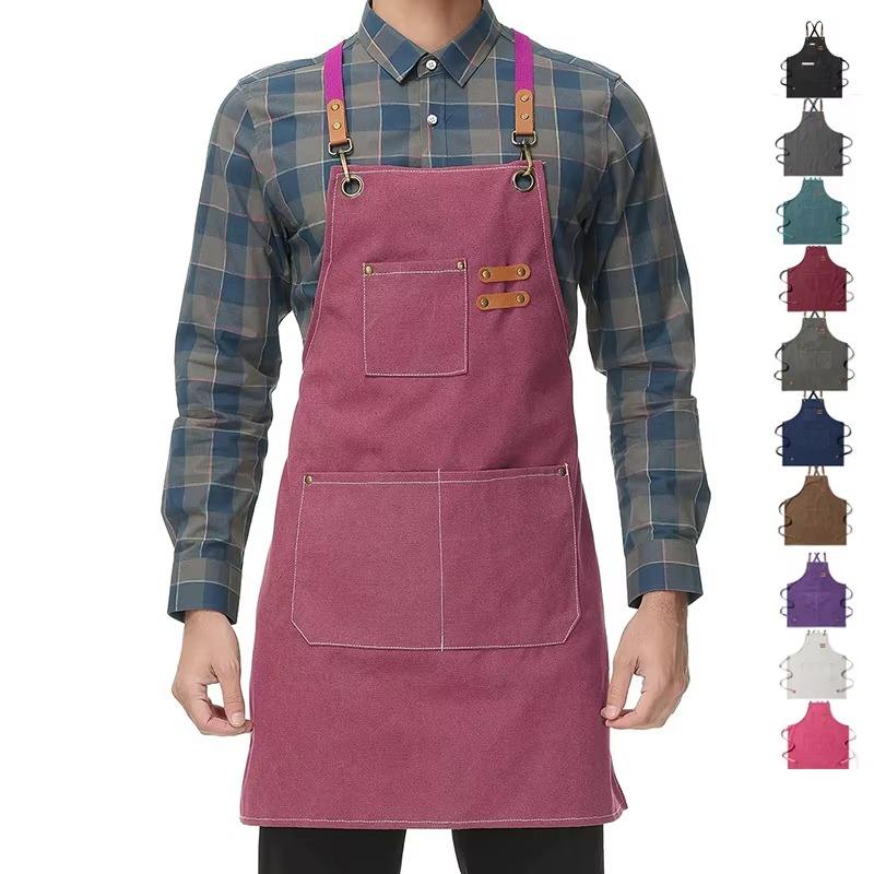 Cotton Denim Bib Apron For Baking Cooking Kitchen Home Use Customizable With Name Logo