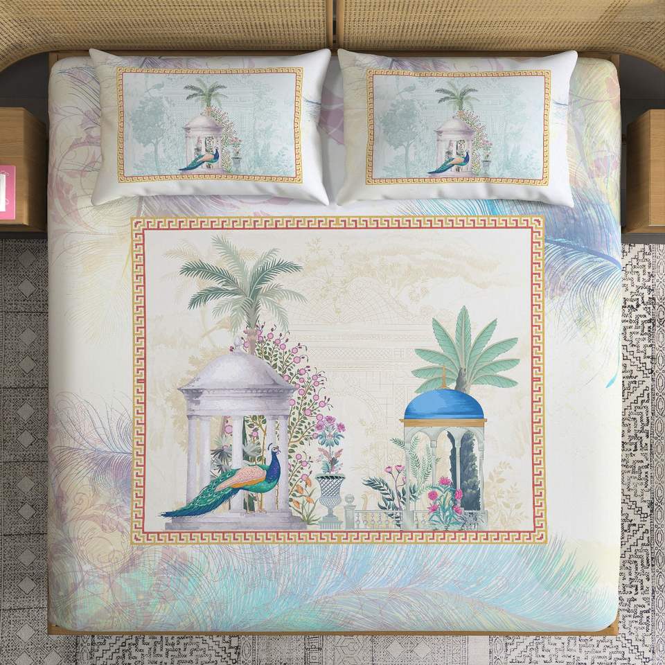 Cotton Double Floral Flat Bedsheet 3-Piece Quilt Set 300TC Quality Grade Classic Style Knitted with Printed Solid Pattern