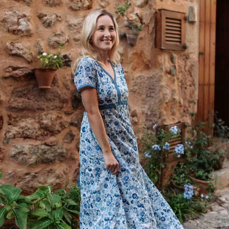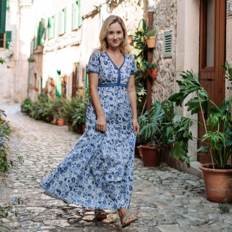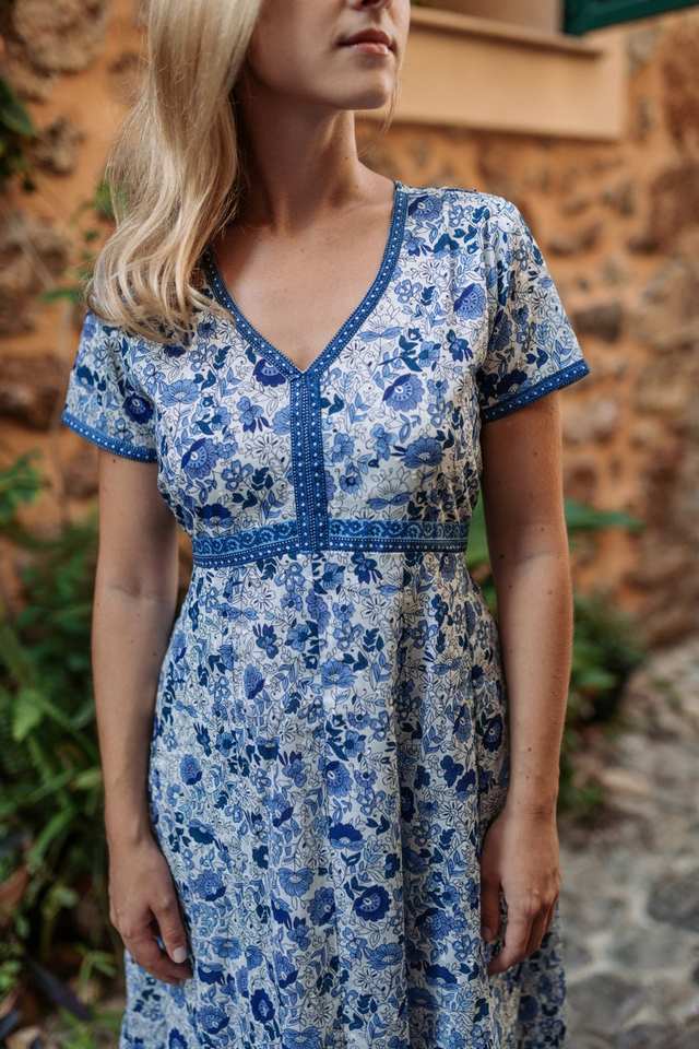 Cotton Dress Casual Women Dress Occasional Wear Ethical Fashion Handcrafted Cotton Dress White Blue Summer Outfit