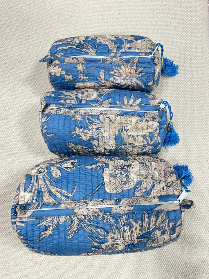 Cotton Eco-Friendly Large Zipper Case Quilted Block Printed Handmade for & Makeup Bag Travel Accessory