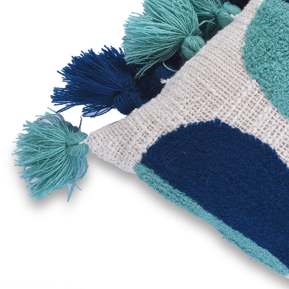 Cotton Embroidered throw cushion cover Indigo and Green decorative Pillow cover with tassels wholesale pillow case