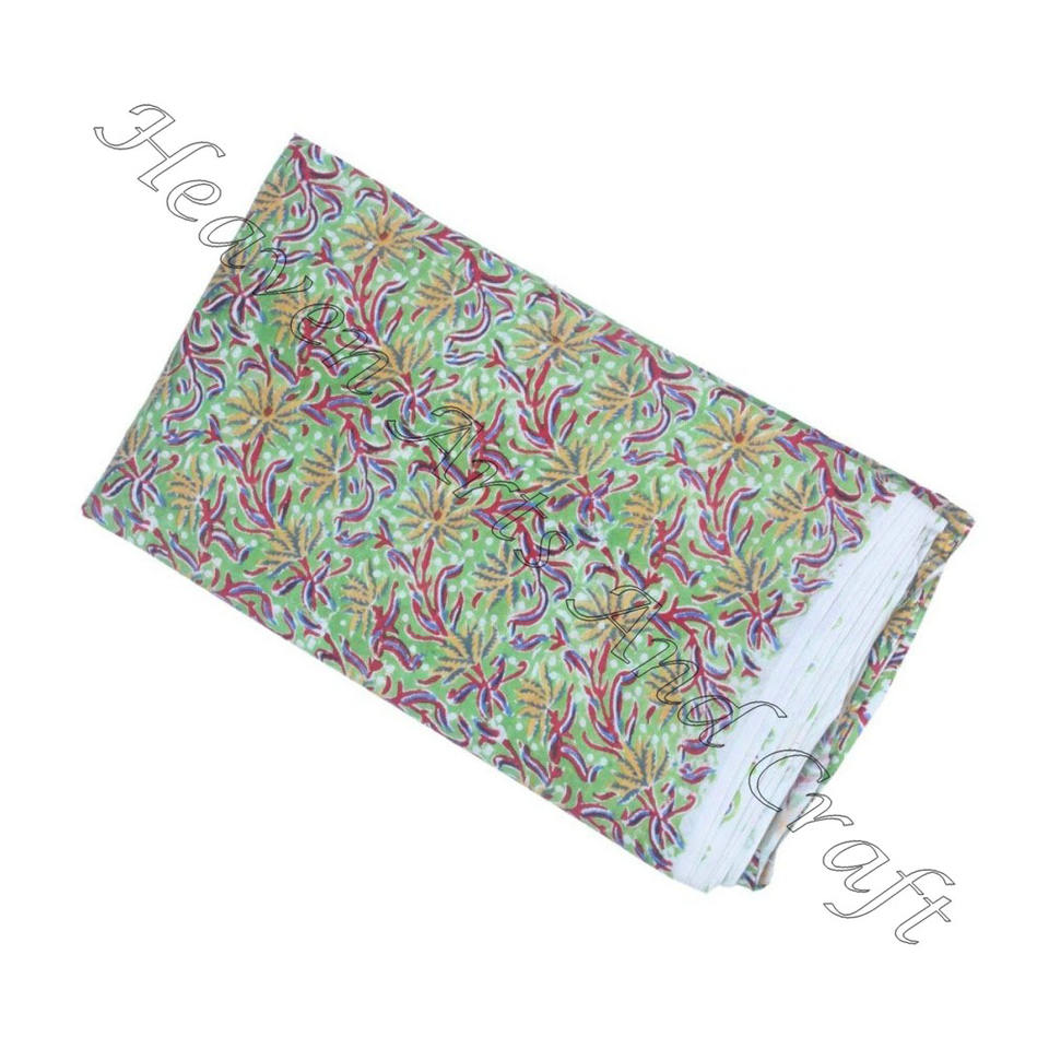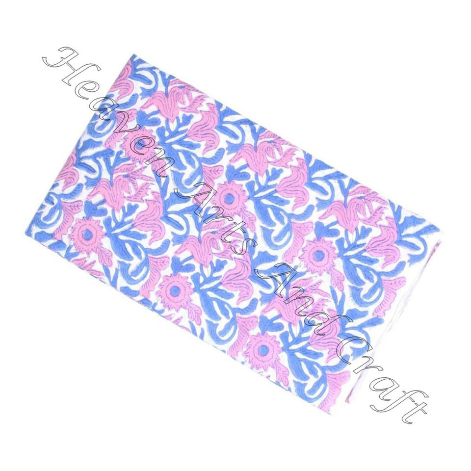 Cotton Fabric By Yard Hand Block Print Floral Pattern Nonwoven Knitted Technics For Home Textile Dress Making Supply Fabric