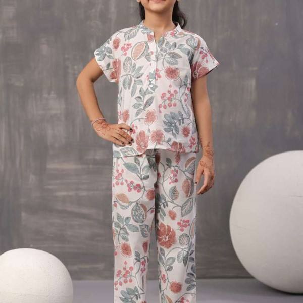 Cotton Fabric Long Pyjama for Women and Girls Breathable Blue Pajama with Elastic Waist Casual Print Style for Summer