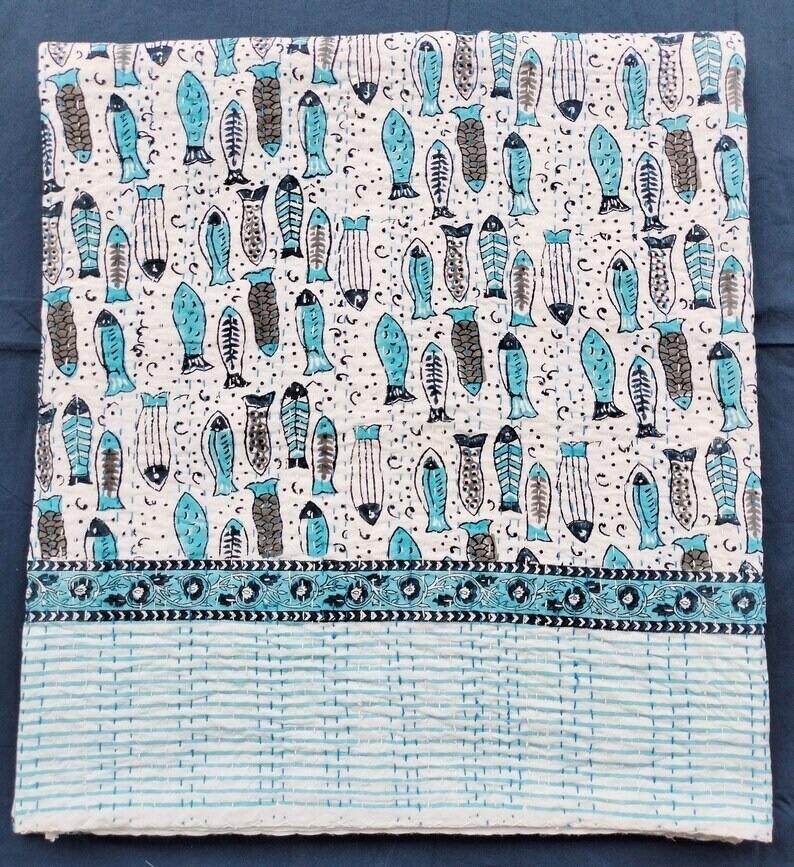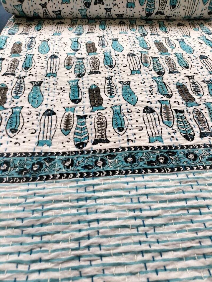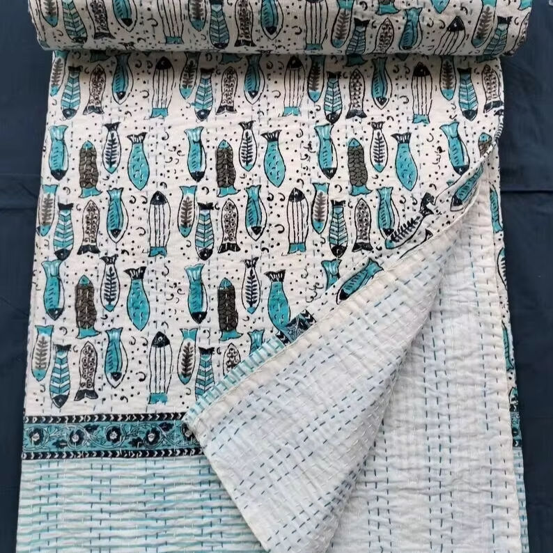 Cotton Filled Kantha Quilts Printed Home and Hotel Use Vintage Queen Kantha Bedspread Cotton Blanket Throw Coverlet Hand Quilted