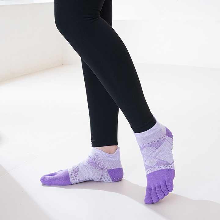Cotton Five Toe Grip Socks Ankle Length Custom Logo Breathable Stretch Fit for Yoga Pilates Daily Use Color Mix Design