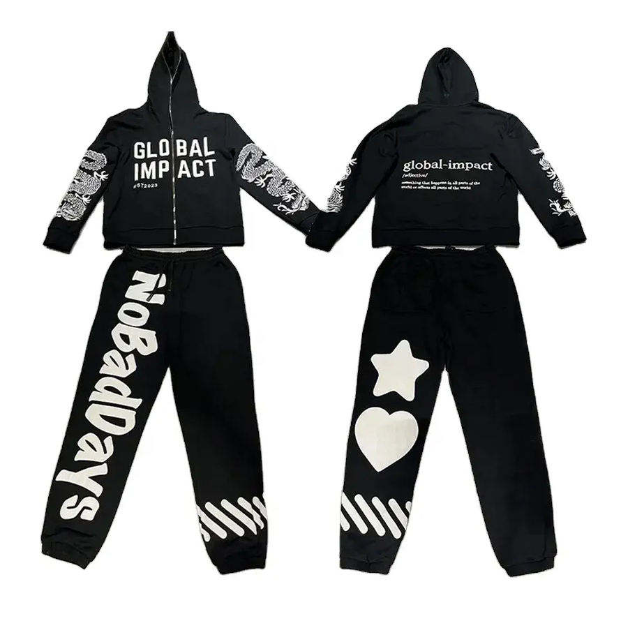 Cotton Flared Tracksuit Men Private Label Oversized Baggy Straight Leg Flare Bottom Acid Wash Tracksuit Unisex