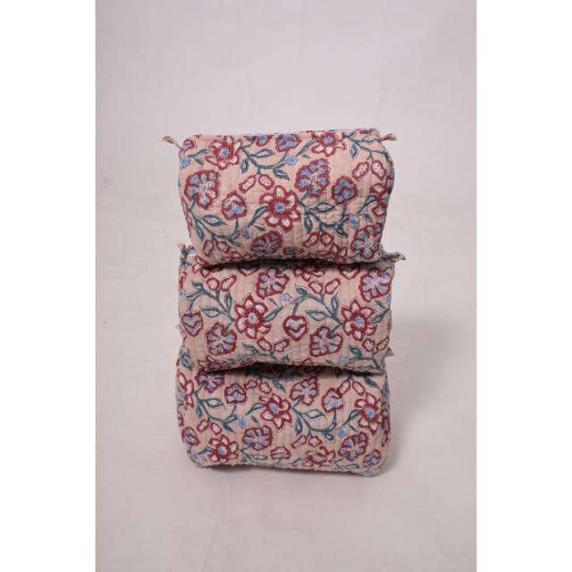 Cotton Floral Makeup Bag, Cosmetic Pouch, Zipper Toiletry Bag, Floral Travel Organizer