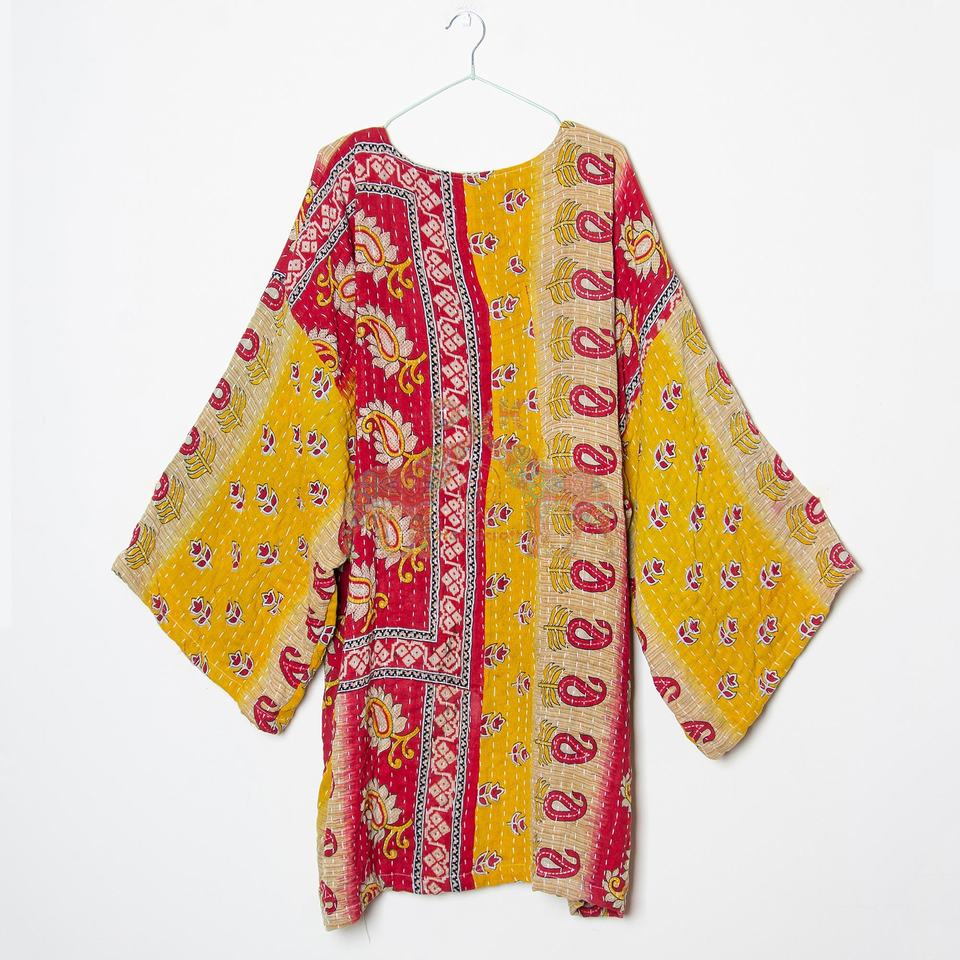 Cotton Hand Block Print Vintage Kantha Kimono Jacket Bathrobe Boho Handmade Kimono Jacket