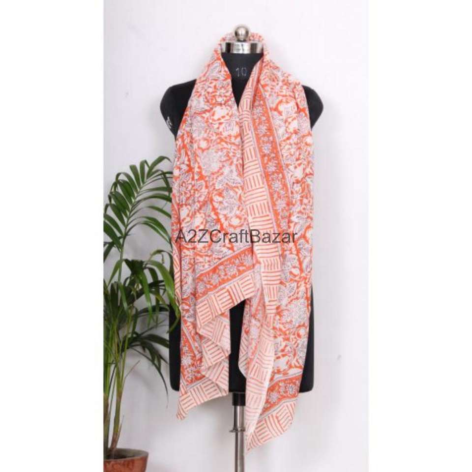 Cotton Hand Block Printed Floral Sarong Pareo Bikini Cover Up Beach Wrap Scarf Lightweight Soft Women Wholesale Fashion