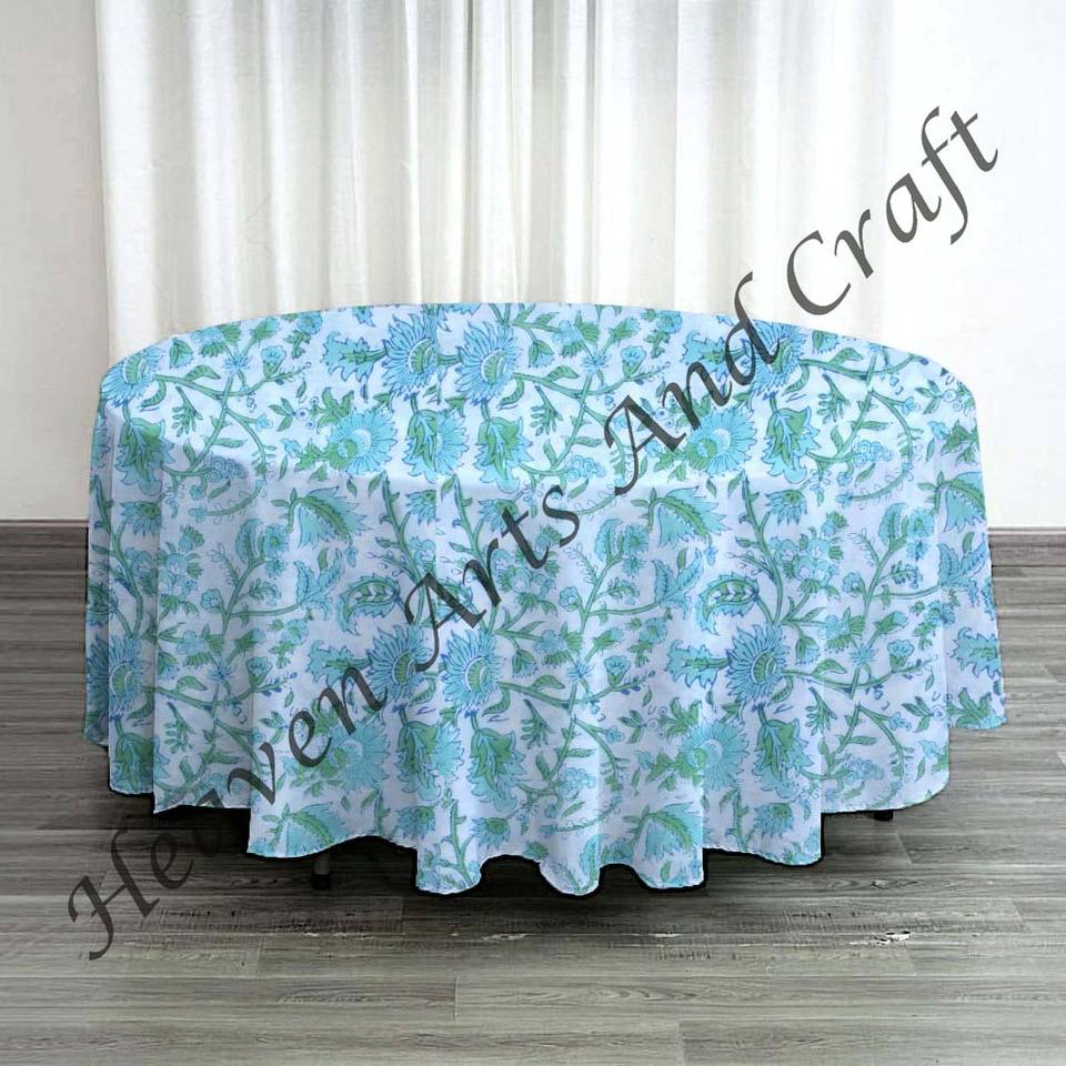 Cotton Hand Block Printed Round 60 Inch Table Linen Tablecloth Dining Table Cotton Custom Table Cover Round 60 Inch Tablecloth