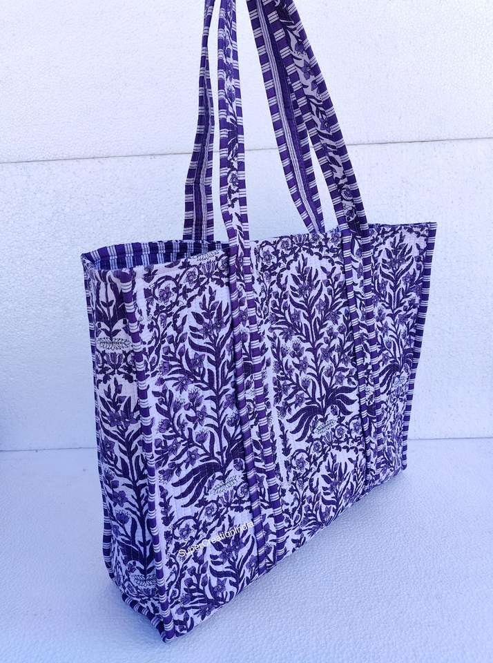 Cotton Handbag Large Shopping Bag Travel Bag Eco-Friendly Women's Hand-Block Print Cotton Quilted Tote Bohemian Shoulder Bag