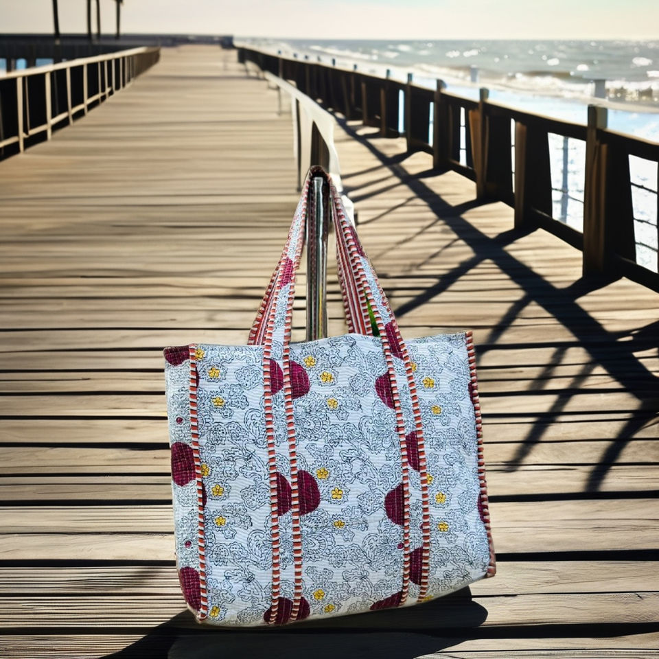 Cotton Handcrafted Traditional Indian Solid Color Summer Tote Bags with Zipper Closure for Autumn/Spring Beach Use