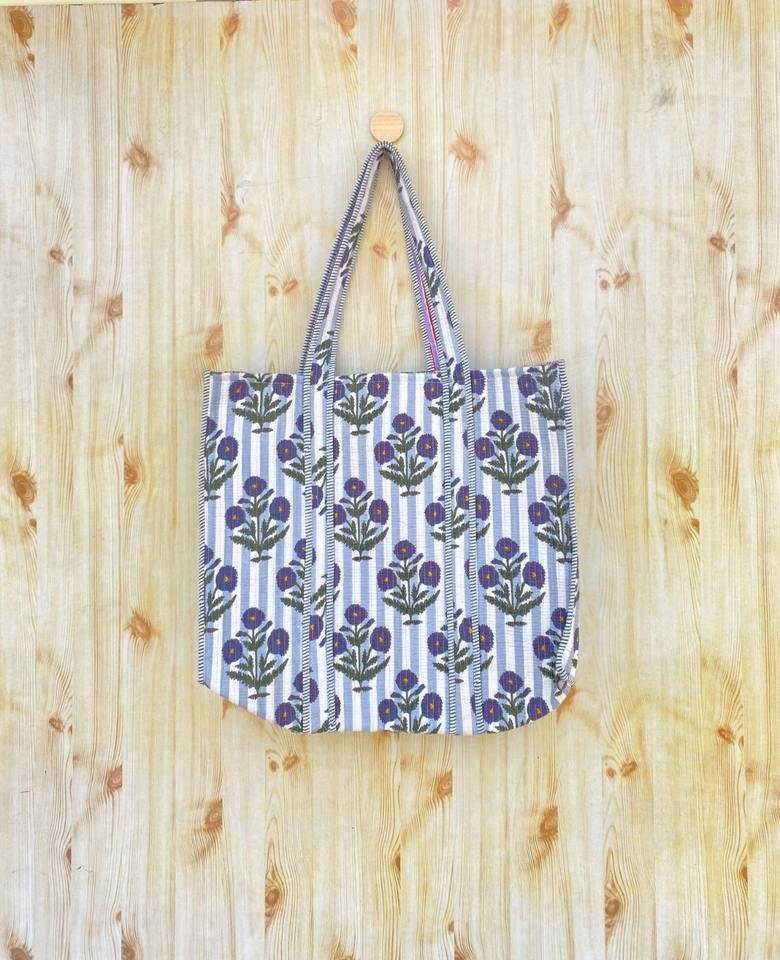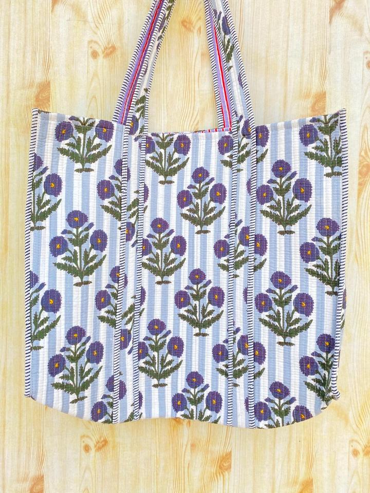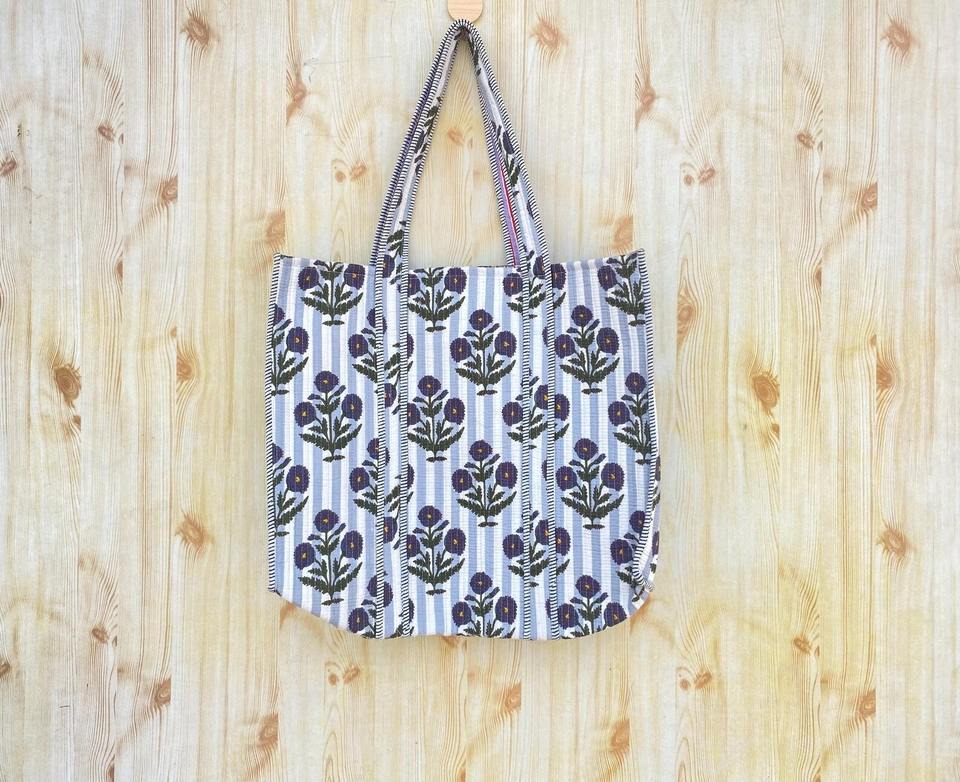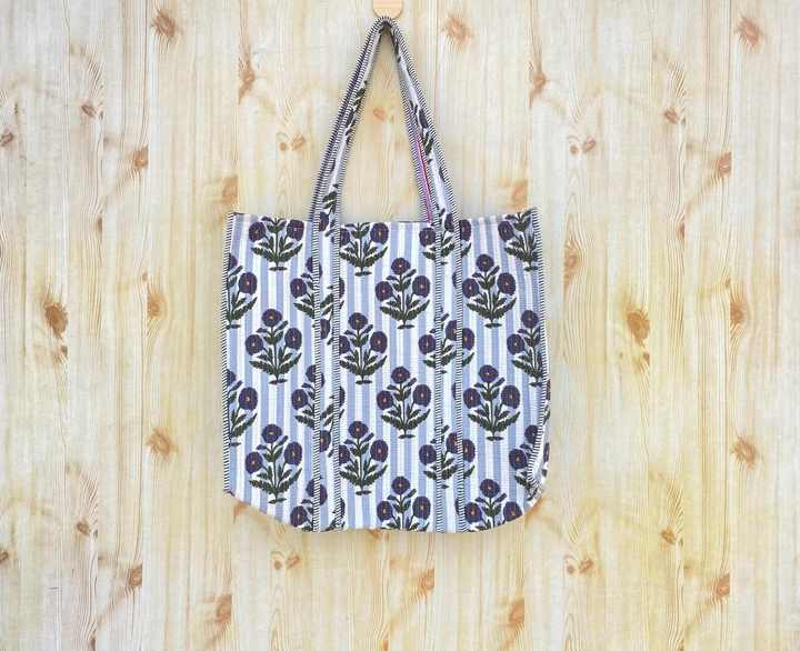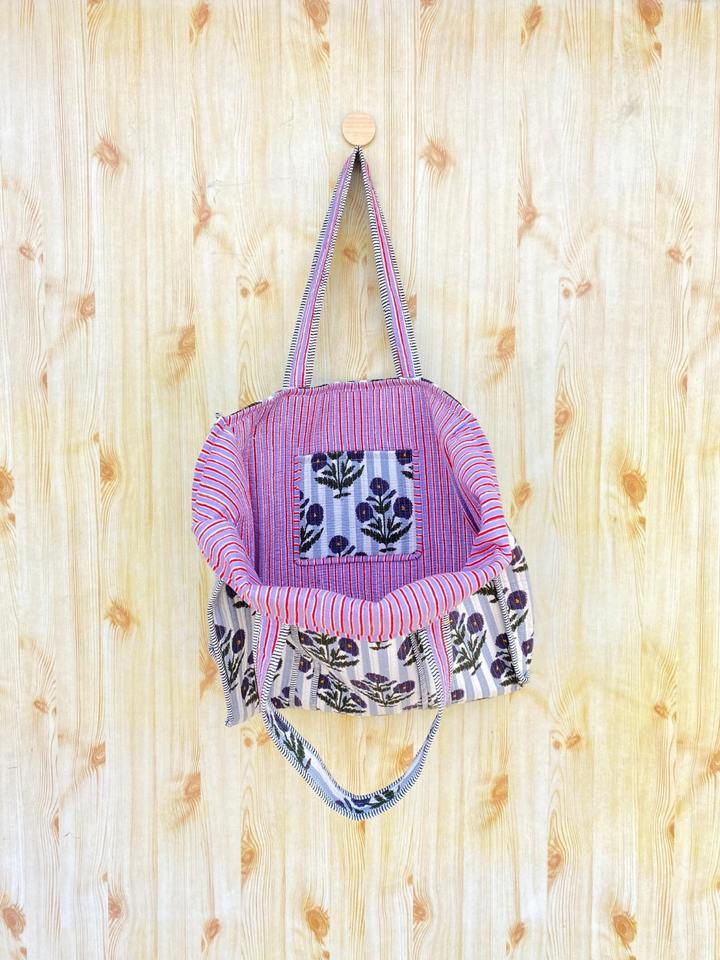 Cotton Jhola Reversible Tote Bag Women Quilted Open Closure Travel Shopping Shoulder Bag Block Printed Hippie Style