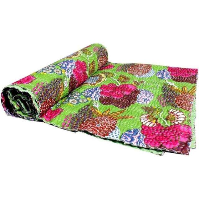 Cotton Kantha Quilt Bedspread Reversible Twin Blanket for Home Decor and Hotel Use Washable Jaipuri Quilt Bedding Wholesale