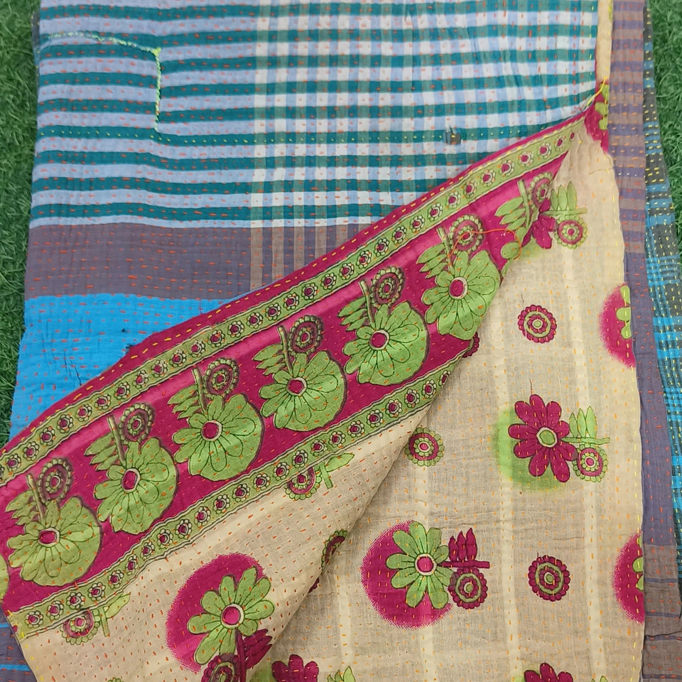 Cotton Kantha Quilt Printed Indian Handmade Vintage Kantha Quilt Hand Stitching Indian Reversible Kantha Quilts