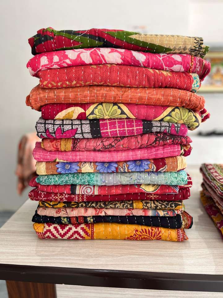 Cotton Kantha Quilts 85x55 Inches Reversible Bedspread Bohemian Kantha Blanket Handmade Wholesale Lot of kantha Home Bed Covers
